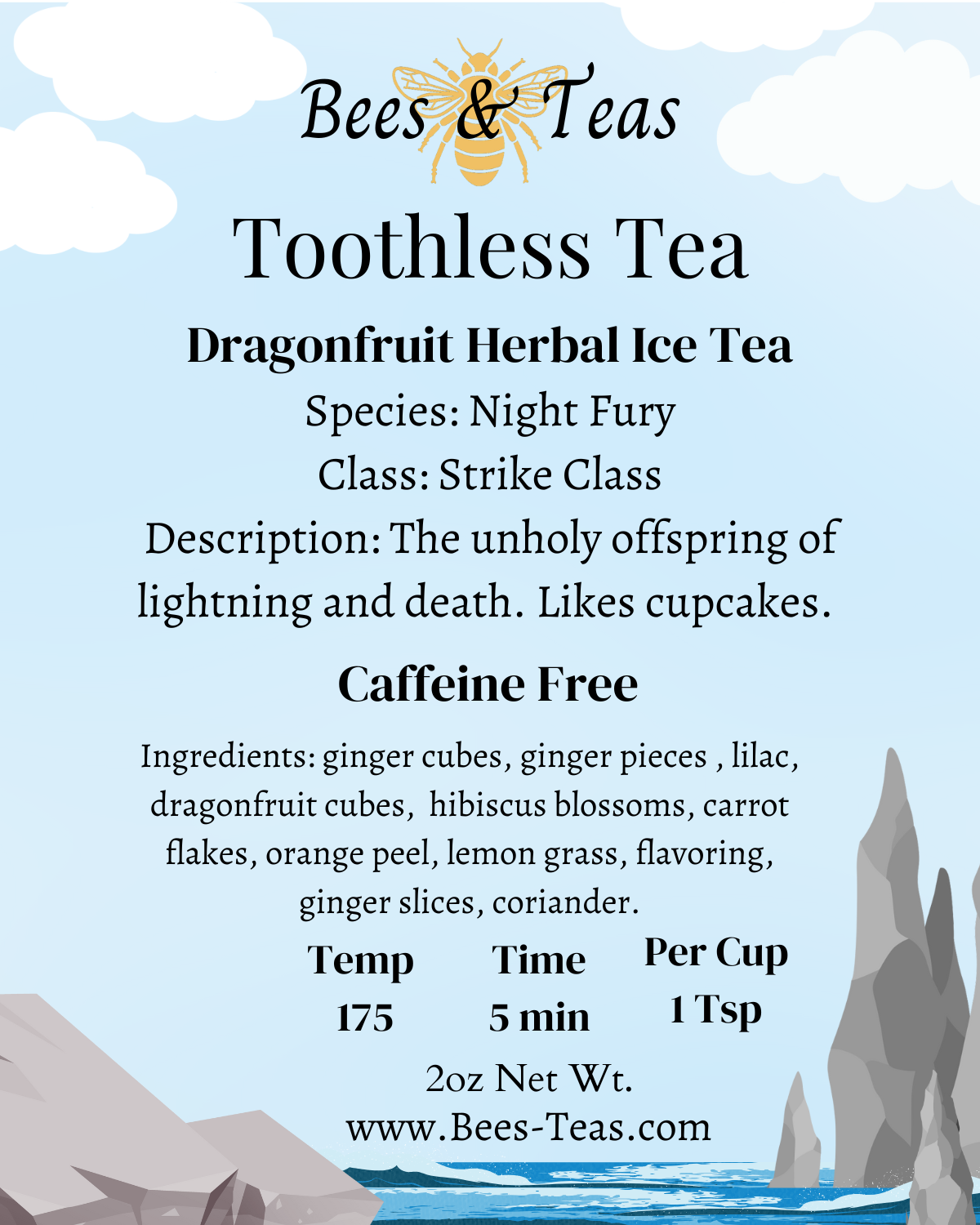 Inspired by the best dragon in animated history Toothless tea brings the sweetness of dragonfruit and the spice of chai together. Sweet, spiced and delightful!